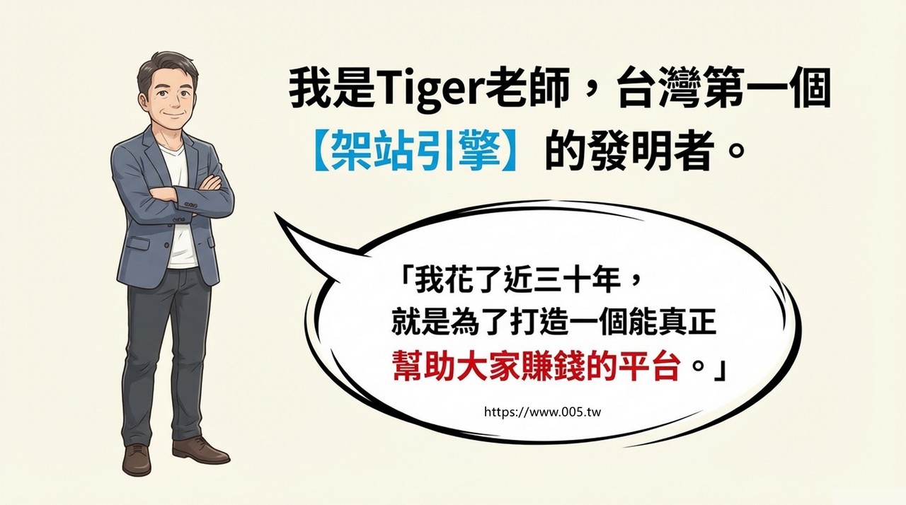 Tiger老師是自動建站的專家 | 台灣站神 | 架站平台 | 台灣站王 | Tiger老師 | 創業導師 創業老師 | 五元網站包租公 |
