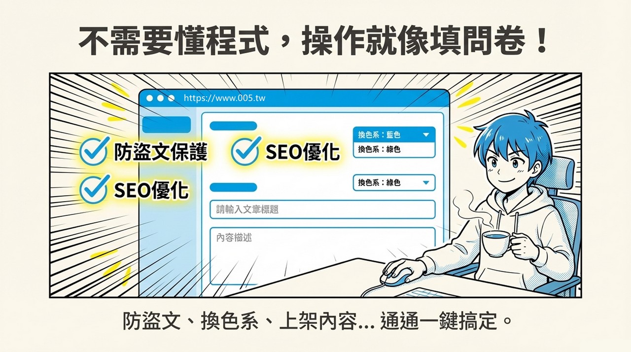 防盜文、換色系、上架內容...簡簡單單就能搞定。